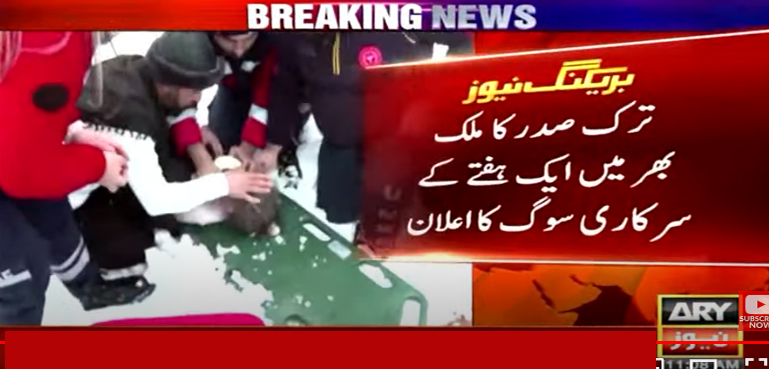 غیر ملکی میڈیا کے مطابق ترکیہ میں دو روز کے دوران تیسرا زلزلہ آیا ہے۔ ملک کے مشرقی حصے میں آنے والے زلزلے کی شدت 5.7 بتائی جا رہی ہے۔ دوسری جانب گزشتہ روز آنے والے قیامت خیز زلزلے کی ہلاکت خیزی میں مسلسل اضافہ ہو رہا ہے۔ ترکی اور شام میں اب تک مرنے والوں کی مجموعی تعداد 4800 تک پہنچ گئی ہے۔ ترک صدر نے رجب طیب اردوان نے ملک بھر میں ایک ہفتے کے سرکاری سوگ کا اعلان کیا ہے۔
