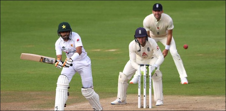 تفصیلات کے مطابق پاکستان نے انگلینڈ کے خلاف ٹیسٹ میچ کے آخری روز فالو آن کا شکار ہونے کے بعد 4 وکٹوں کے نقصان پر 187 رنز بنائے، بابر اعظم نے ناقابل شکست 63 رنز کی اننگز کھیلی۔