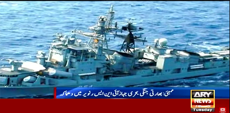 بھارتی میڈیا کے مطابق ممبئی میں بھارتی جنگی بحری جہاز آئی این ایس رنویر میں زوردار دھماکا ہوا جس کے نتیجے میں 3نیوی اہلکار ہلاک ہو گئے جب کہ 10 سے زائد زخمی ہوئے جن میں بعض کی حالت تشویشناک ہے۔