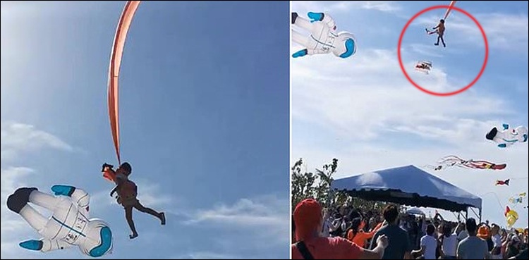 غیرملکی خبررساں ادارے کی رپورٹ کے مطابق تائیوان میں سالانہ فیسٹیول کے دوران تین سالہ بچی کو پتنگ سے باندھ کر 100 فٹ بلندی پر اڑتی دیکھی گئی جس کی ویڈیو وائرل ہوگئی۔