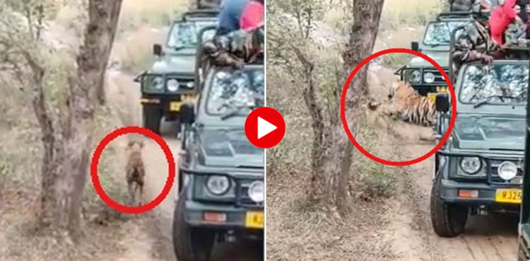 بھارتی ریاست راجستھان کے رنتھمبور نیشنل پارک کی ایک ویڈیو سوشل میڈیا پر وائرل ہورہی جس میں دیکھا جاسکتا ہے کہ سیاحوں کی موجودگی میں شیر نے کتے کو دبوچ لیا۔