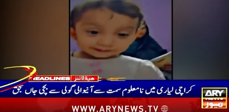 کراچی کے علاقے لیاری میں گھر کی چھت پر کھیلنے والی ننھی بچی اندھی گولی لگنے سے جاں بحق ہو گئی۔