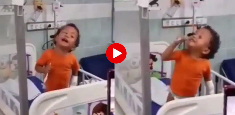 ویڈیو میں دیکھا جاسکتا ہے کہ جب بچے نے ٹی وی اپنا پسندیدہ گانا چلتا ہوا دیکھا تو وہ خود کو روک نہیں سکا اور اسپتال کے بیڈ پر ہی چمچے کو مائیک بنا کر گانا گنگنا اور جھومنا شروع کردیا۔