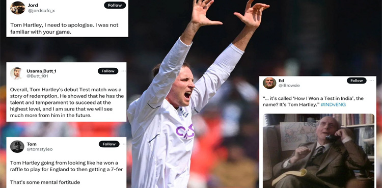 ڈیبیو ٹیسٹ میچ میں ٹام ہارٹلے کی بہترین بولنگ پرفارمنس کے بعد شائقین کرکٹ کا کہنا ہے کہ انگلینڈ کے لیفٹ آرم آرتھوڈوکس اسپنر نے انٹرنیٹ پر ہونے والی ٹرولنگ کو سنجیدہ لیتے ہوئے بھارتی بیٹنگ لائن کو تہس نہس کردیا۔