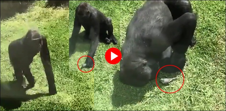 گوریلا نے چڑیا کے پاس آکر اس کو ہاتھ سے پیار کیا اور اسے اڑانے کی کوشش بھی کی۔