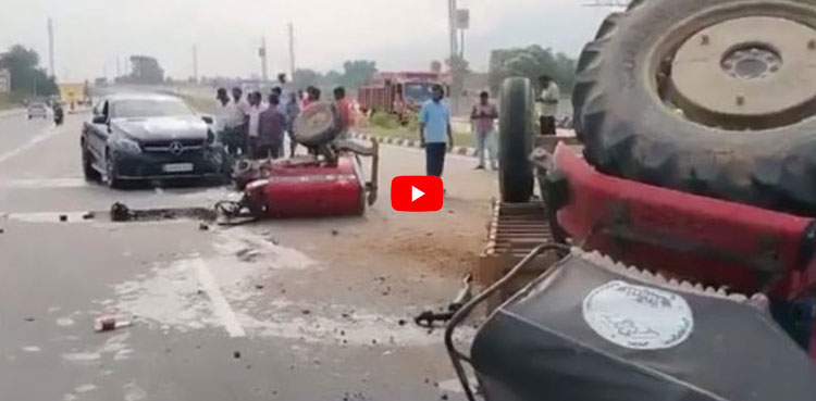 خوش قسمتی سے ٹریکٹر ڈرائیور معمولی زخمی ہوا جبکہ کار میں سوار مسافر محفوظ رہے، حادثے کی ویڈیو تیزی سے سوشل میڈیا پر وائرل ہورہی ہے۔