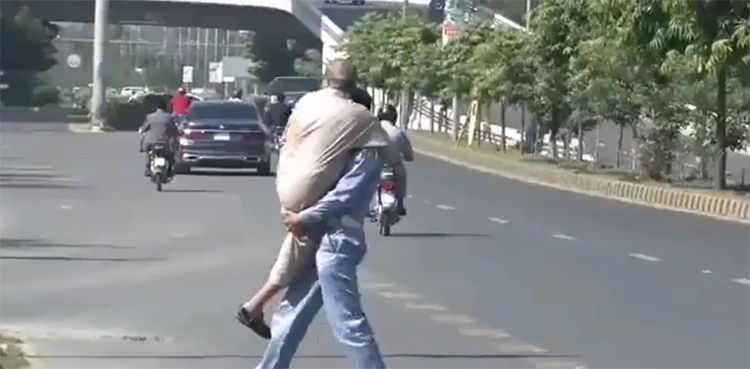 تفصیلات کے مطابق سوشل میڈیا پر ایک ویڈیو تیزی سے وائرل ہورہی ہے ، ویڈیو میں دیکھا جاسکتا ہے کہ ٹریفک وارڈن نے ضعیف العمر شخص کو کندھوں پراٹھا کر سڑک پار کروائی۔