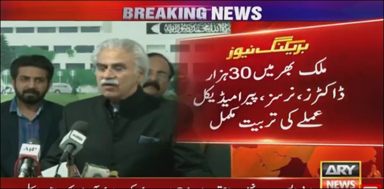 اسلام آباد: کرونا وائرس کی وبا کے خلاف جنگ کے لیے ملک بھر میں 30 ہزار ڈاکٹرز، نرسز اور پیرا میڈیکل عملے کی تربیت مکمل کر لی گئی۔