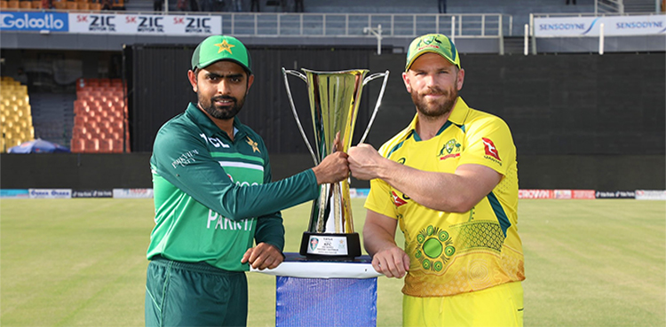 کپتان بابر اعظم اور ایرون فنچ نے قذافی اسٹیڈیم میں ٹرافی کی رونمائی کی۔ چمچماتی ٹرافی پر قبضے کے لیے تین میچوں کی سیریز کا آغاز کل سے ہو گا۔