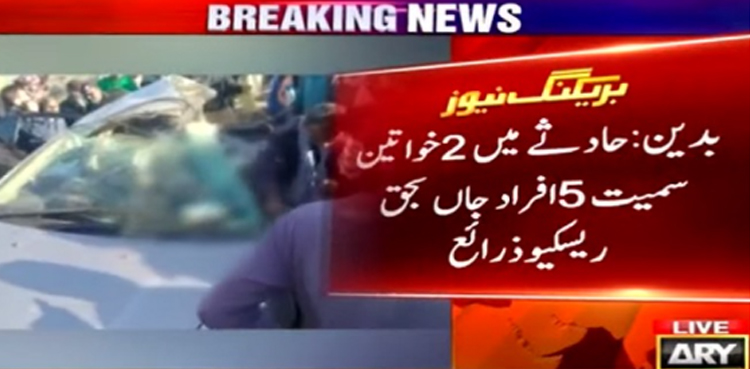 بدین : حیدرآباد ہائی وے پر خوفناک ٹریفک حادثے میں ایک ہی کار میں سوار 5 افراد جاں بحق ہوگئے ، جاں بحق افراد میں 2 خواتین بھی شامل ہیں۔