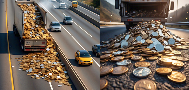 80 لاکھ سکوں سے بھرا ٹرک الٹ گیا، پھر کیا ہوا؟