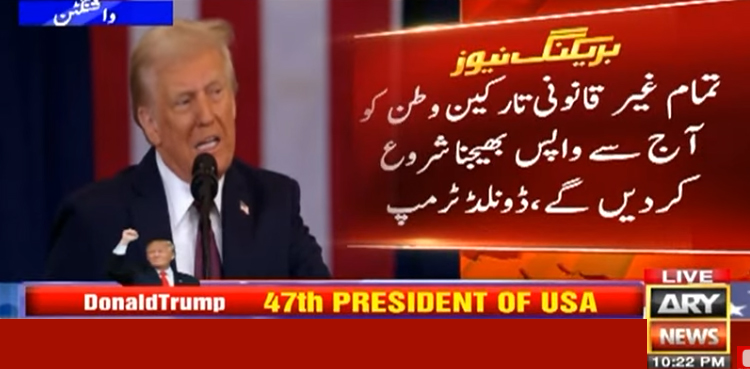 نومنتخب امریکی صدر ڈونلڈ ٹرمپ نے جنوبی سرحدوں پر نیشنل ایمرجنسی کا اعلان کرتے ہوئے کہا ہے کہ دنیا بھر سےجرائم پیشہ افراد ہمارے ملک میں غیرقانونی طور پر داخل ہوئے آج سے ہم لاکھوں غیرقانونی طور پر آئے لوگوں کو واپس بھیجیں گے۔
