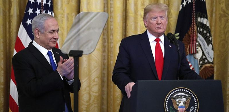 ٹرمپ کا کہنا تھا کہ امن منصوبے کے تحت مغربی کنارے کو آدھے حصے میں نہیں کاٹا جاسکے گا، یروشلم اسرائیل کا غیرمنقسم اور بہت اہم دارالحکومت کہلائے گا‘۔