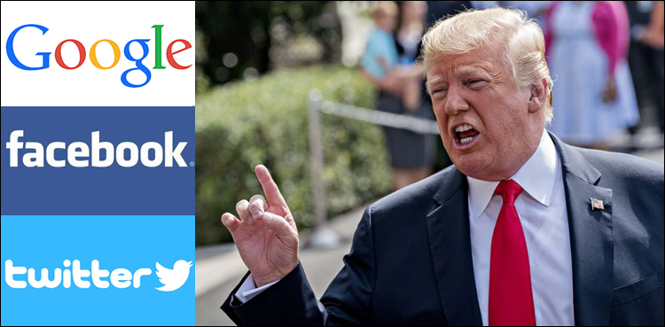 غیرملکی خبررساں ادارے کے مطابق امریکی صدر ڈونلڈ ٹرمپ نے گوگل، فیس بک اور ٹویٹر کو دھمکی دیتے ہوئے کہا ہے کہ کمپنیاں ڈیموکریٹکس کی حامی، ری پبلکنز کے خلاف تعصب کا مظاہرہ کررہی ہیں۔