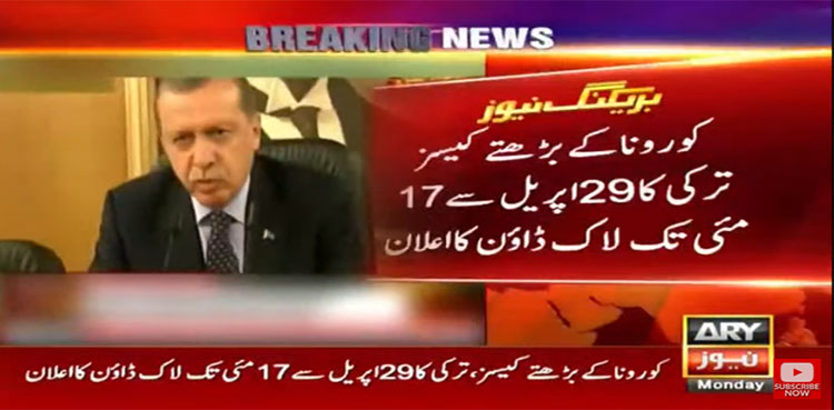 ترک میڈیا کے مطابق صدر طیب اردوان نے ملک میں کورونا کیسز میں اضافے پر29 اپریل سے 17 مئی تک لاک ڈاؤن کا اعلان کر دیا۔