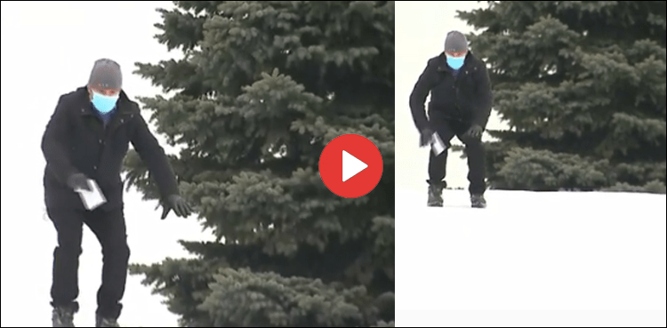 یہ ویڈیو کینیڈین چینل کی ہے جس کے رپورٹر نے ٹورنٹو کی صورت حال اور سردی کی شدت بتانے کے لیے انوکھا انداز اپنایا اور برف میں کھڑے ہوکر براہ راست تفصیلات فراہم کیں۔