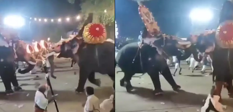ویڈیو میں دیکھا جا سکتا ہے کہ رات کے وقت تھریشور کے علاقے میں ایک مندر میں ہونے والی تقریب میں شریک دو ہاتھیوں میں سے ایک ہاتھی نے اچانک بدمست ہو کر سامنے آنے والے ہاتھی پر حملہ کر دیا۔ جس سے لوگوں میں بھگدڑ اور چیخ وپکار مچ گئی۔