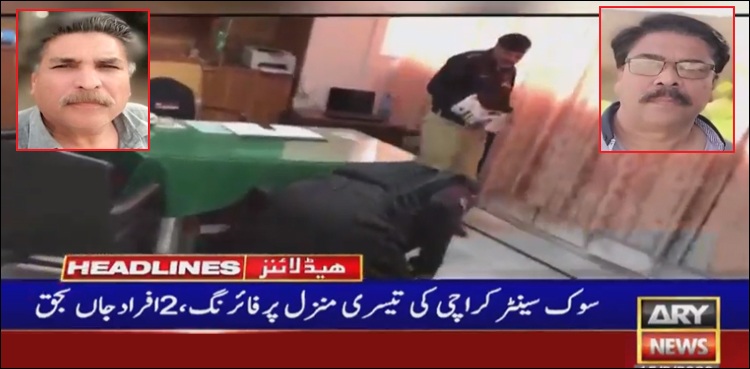 نمائندہ اے آر وائی نیوز کے مطابق کراچی میں سوک سینٹر کی تیسری منزل پر فائرنگ کے نتیجے میں اسسٹنٹ ڈائریکٹر لینڈ وسیم عثمانی جاں بحق اور ایڈیشنل ڈائریکٹر وسیم رضا جاں بحق ہوگئے۔