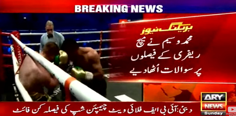برطانوی باکسر سنی ایڈورڈز کو ٹیکنیکل بنیاد پر فاتح قرار دیا گیا، محمد وسیم نے تمام 12 راؤنڈز میں بھرپور مقابلہ کیا۔