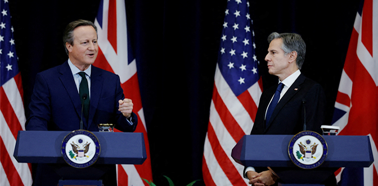 ڈیوڈ کیمرون نے امریکی وزیر خارجہ انٹونی بلنکن کے ساتھ مشترکہ پریس کانفرنس کے دوران کہا کہ برطانیہ رفح میں ’تصادم‘ کی صورت میں انسانی ہمدردی کی بنیاد پر آپشنز پر غور کر رہا ہے۔