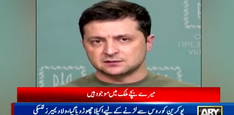 تفصیلات کے مطابطق یوکرینی صدر ولادی میرزلنسکی نے اپنے ویڈیو بیان میں عالمی برادری سے شکوہ کرتے ہوئے کہا کہ روس سے لڑنے کیلیے اکیلا چھوڑ دیا گیا، کوئی بھی ہمارا ساتھ دیتے نظر نہیں آرہا۔
