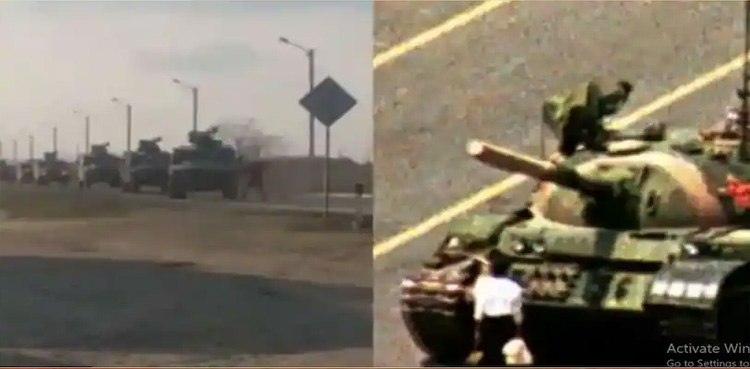 غیر ملکی خبر رساں ادارے کی رپورٹ کے مطابق روس یوکرائن جنگ کے دوران ایک ویڈیو سامنے آئی ہے جس میں ایک شخص جو نہتا ہونے کے باوجود بہادری سے روسی ٹینکوں کی ایک قطار کی پیش قدمی کو روکنے کی کوشش کر رہا ہے۔
