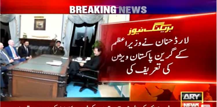 لارڈ حنان نے وزیراعظم کے گرین پاکستان ویژن کی تعریف کرتے ہوئے 10بلین ٹری سونامی منصوبے کوبھی سراہا۔