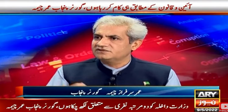 اسلام آباد: گورنر پنجاب عمر سرفراز چیمہ کا کہنا ہے کہ وزارت داخلہ کو دو مرتبہ نفری سے متعلق لکھ چکا ہوں، رانا ثنا اللہ وزیر داخلہ بن چکے ہیں اب وہ ن لیگ کے درباری نہیں۔