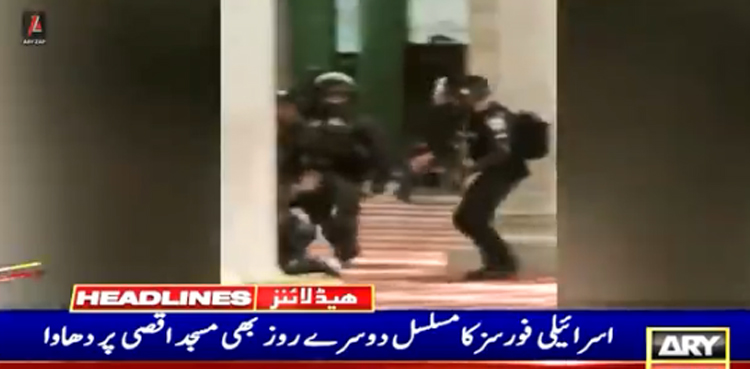 تفصیلات کے مطابق صیہونی فورسز باز نہ آئی اور دوسرے دن بھی مسجدِ اقصیٰ پر دھاوا بول دیا، قابض فوج دروازہ توڑ کر مسجد میں داخل ہوئی اور عبادت کرنے والے نمازیوں پراسٹن گرنیڈ فائر کیے اور ربڑ کی گولیاں برسا دیں۔