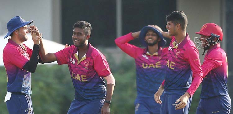 اس سے قبل یو اے ای کی ٹیم 47.5 اوورز میں 193 رنز پر آؤٹ ہوئی تھی، کپتان ایان افضال نے 55 رنز کی شاندار اننگز کھیلی، اریانش شرما 46 رنز کے ساتھ نمایاں رہے۔