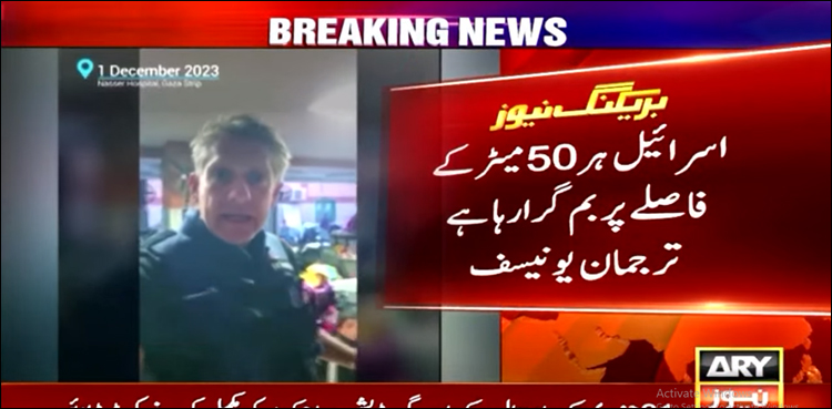 ترجمان یونیسیف نے کہا کہ ہم غزہ میں مزید بچوں کو اذیت میں مبتلا نہیں ہونے دے سکتے، اسے روکنا ہوگا۔ ایکس پر جیمز ایلڈر کی جانب سے شیئر ہونے والی ویڈیو میں دیکھا جا سکتا ہے کہ وہ غزہ کے اسپتال النصر میں کھڑے ہو کر صورت حال سے خبردار کر رہے ہیں۔