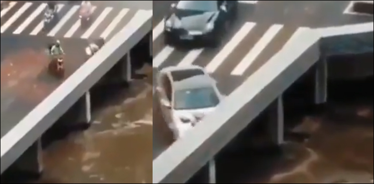 یہ پہیلی نما ویڈیو دیکھ کر آپ بھی حیران رہ جائیں گے کیونکہ ایک پُل ہے جہاں نیچے گندے پانی کا تالاب نظر آرہا ہے، پُل کے نیچے گاڑیاں تو آرہی ہیں مگر وہ اس کے بعد لاپتہ ہوجاتی ہیں۔