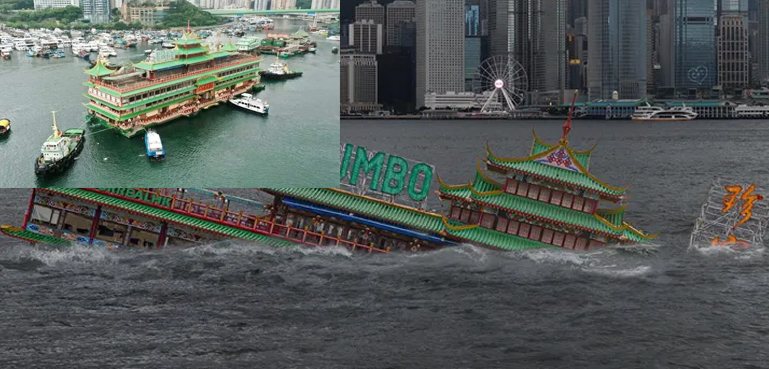 🔴CHINA :#VIDEO HONG KONG'S ICONIC JUMBO FLOATING RESTAURANT SINKS IN SOUTH CHINA SEA AFTER BEING TOWED AWAY TO AN UNKNOWN DESTINATION!