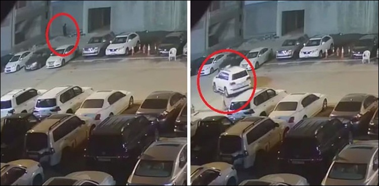 وائرل ویڈیو میں دیکھا جاسکتا ہے کہ سیاہ عبایا زیب تن کیے ایک لڑکی پارکنگ ایریا میں داخل ہوئی اور اطمینان کرنے کے بعد کہ کوئی گارڈ اسے دیکھ تو نہیں رہا متعدد گاڑیاں کھولنے کی کوشش کی اور چند لمحوں بعد ایک گاڑی کھولنے میں کامیاب ہوگئی۔