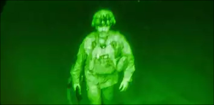 کابل: امریکی فوجیوں نے گزشتہ رات 20 سال بعد افغانستان چھوڑ دیا، افغانستان کی سرزمین چھوڑنے والے آخری امریکی فوجی کی تصویر منظرعام پر آگئی۔