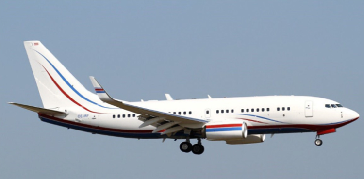 امریکی ساختہ ہوائی جہاز بوئنگ 737-7JU، پر الزام ہے کہ اس نے 2022 میں یوکرین پر ماسکو کے حملے کے بعد نافذ کردہ امریکی قانون اور پابندیوں کی خلاف ورزی کرتے ہوئے ایک بیرونِ ملک سے روس کا سفر کیا تھا۔