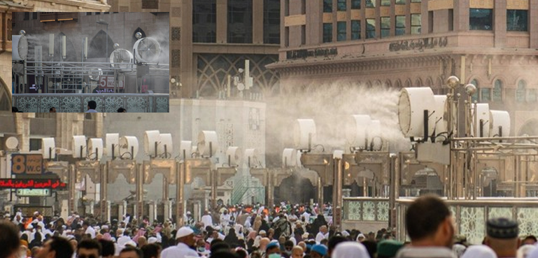 عرب میڈیا کے مطابق مسجد الحرام کے صحنوں میں زائرین کی سہولت اور آب وہوا کو خوشگوار بنانے کے لیے پھوار والے پنکھوں کا استعمال بڑھا دیا گیا ہے۔