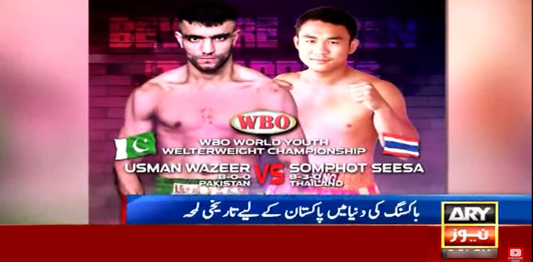 ایشین چیمپئن باکسر عثمان وزیر ڈبلیو بی او ورلڈ یوتھ ٹائٹل فائٹ کے لیے آج تھائی باکسر سے مقابلہ کریں گے، قومی باکسر کو ٹاپ رینک باکسر سمپوت سیسا کو زیر کرکے ٹائٹل اپنے نام کرنا ہوگا۔