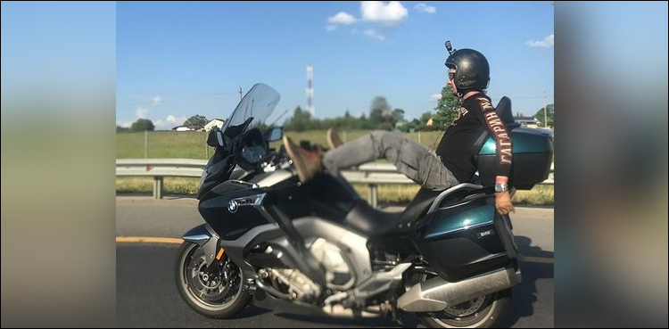 ویڈیو بلاگر نے اپنی ویڈیو براہ راست نشر کی، اس دوران انہوں نے اپنے دونوں پیر موٹرسائیکل کے ہینڈل پر رکھ دیے تھے اور ہاتھوں میں موبائل تھام کر کسی سے میسج پر بات کرتے رہے۔