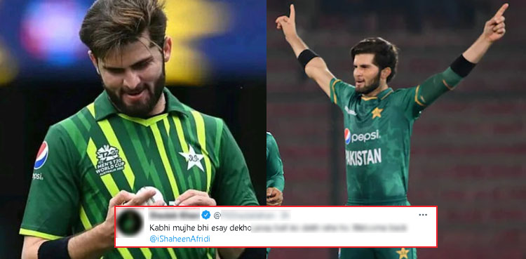 Kabhi mujhe bhi esay dekho jesay ball ko dekh rahe ho. Welcome back @iShaheenAfridi pic.twitter.com/4NguQ5HKQE