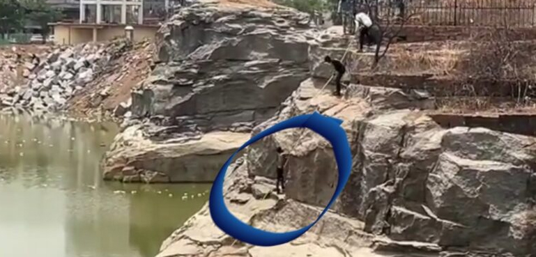 قبل اس کے کہ بیوی کا ستایا دنیش تالاب میں کودتا، وہاں موجود لوگوں نے اسے سمجھا بجھا کر رسی کی مدد سے باہر نکالا۔