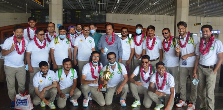 لاہور: سہہ ملکی بلائنڈ کرکٹ ٹورنامنٹ میں شاندار فتح کے بعد پاکستان بلائنڈ کرکٹ ٹیم وطن واپس پہنچ گئی۔