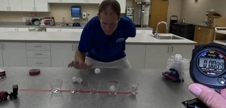 ڈیوڈ رش نے سب سے پہلے 2018 میں کوسٹا ریکا کے سفر کے دوران پنگ پانگ گیند کو پانچ کپ میں باؤنس کرنے کا تیز ترین ریکارڈ قائم کیا لیکن ان کا 3.51 سیکنڈ کا وقت جلد ہی ایک دوسرے چیلنجر نے توڑ دیا۔