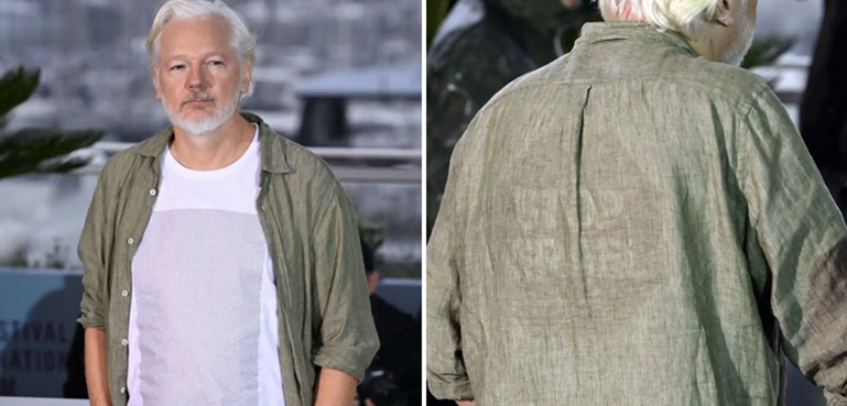 غیر ملکی میڈیا کے مطابق اسانج جو کانز فلم فیسٹیول میں امریکی فلمساز یوجین جیریکی کی دستاویزی فلم دی سکس بلین ڈالر مین کی تشہر کے لیے شریک ہوئے تھے۔ انہوں نے یہ ٹی شرٹ پہن کر فوٹو سیشن میں شرکت کی۔ تاہم اس موقع پر انہوں نے میڈیا سے کوئی گفتگو نہیں کی۔