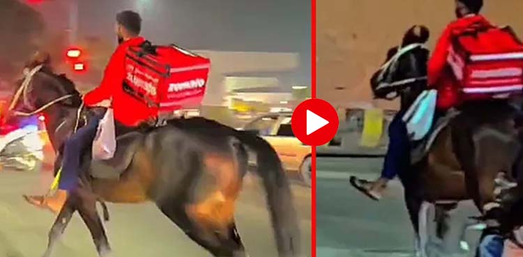 ڈیلیوری بوائے کی گھوڑے پر سامان پہنچانے کی ویڈیو وائرل