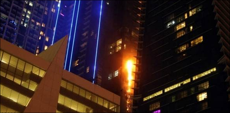 دبئی: متحدہ عرب امارات کی ریاست میں واقع دبئی ٹاور میں آگ لگنے کا واقعہ پیش آیا۔