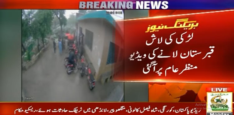 اے آر وائی نیوز کے مطابق جرگے کے حکم پر قتل ہونے والی لڑکی کی لاش کس طرح قبرستان لائی گئی سی سی ٹی وی فوٹیج نے سب واضح کردیا، کئی افراد مقتولہ کی لاش لوڈر رکشے پر ڈال کر لاتے ہوئے دیکھے گئے۔