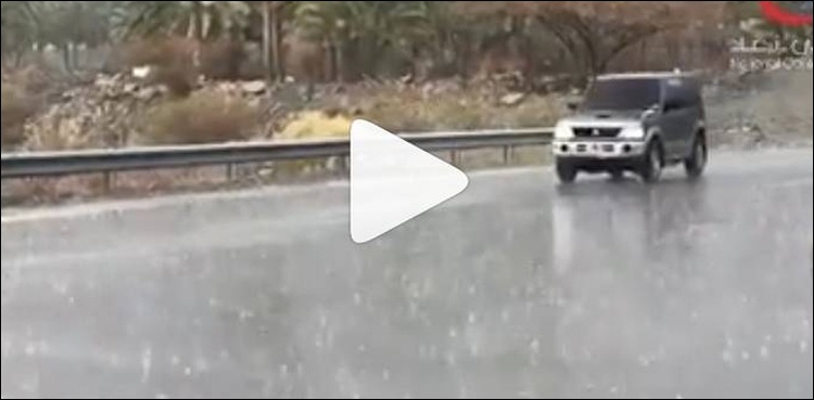 ویڈیو میں دیکھا جاسکتا ہے کہ موسلا دھار بارش ہورہی ہے اور سڑکوں پر ٹریفک رواں دواں ہے اور ایک شہری بارش کو انجوائے کرتے ہوئے اپنی گاڑی ویڈیو بنارہا ہے۔