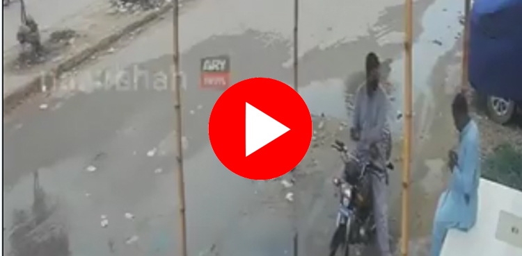کراچی میں مضحکہ خیز واردات کی سی سی ٹی وی فوٹیج اے آر وائی نیوز کو مل گئی ہے، فوٹیج میں دیکھا جاسکتا ہے کہ شہری چبوترے پر بیٹھا ہوا ہے کہ اچانک موٹر سائیکل پر تنہا ملزم اس کے قریب آکر پستول نکالنے لگتا ہے۔