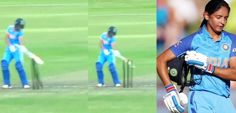 بھارتی ویمنز کرکٹ ٹیم کی کپتان ہرمن پریت کور بنگلہ دیش کے خلاف میچ میں آؤٹ ہونے کے بعد آپے سے باہر ہوگئیں اور اپنا بیٹ اسٹمپس پر دے مارا۔